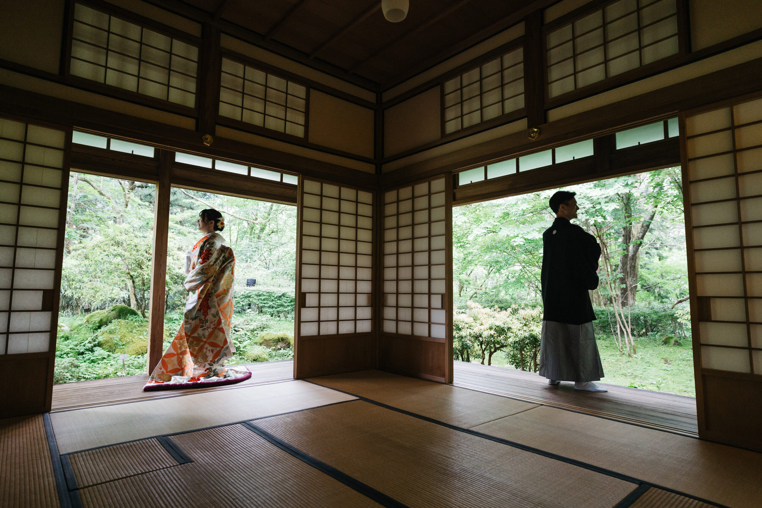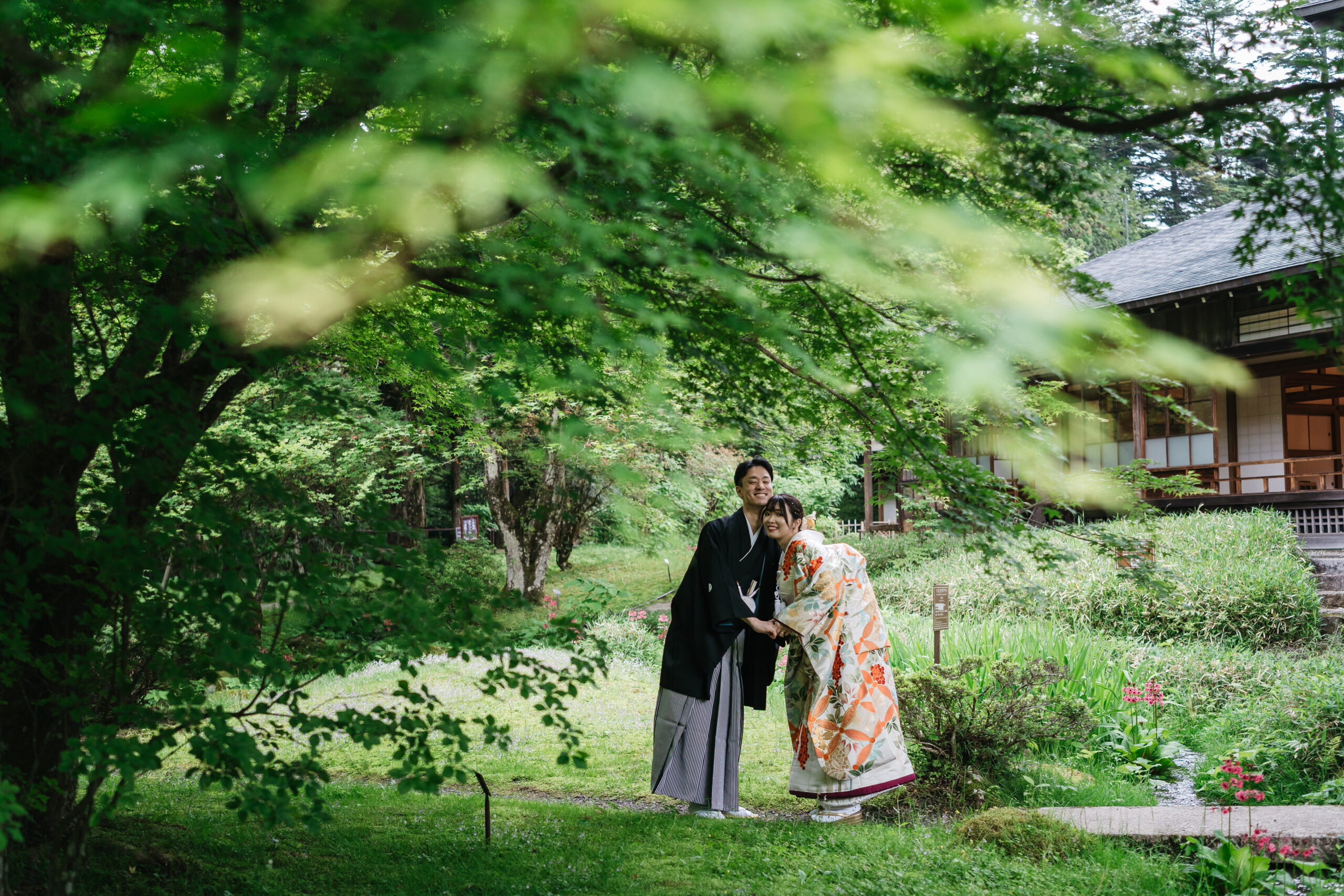 風情ある庭園と日光田母沢御用邸の100年に及ぶ荘厳な趣きを贅沢に堪能。春は色鮮やかに花々が咲き、秋は紅葉が美しい庭園です。和装と洋装どちらも叶えられます。